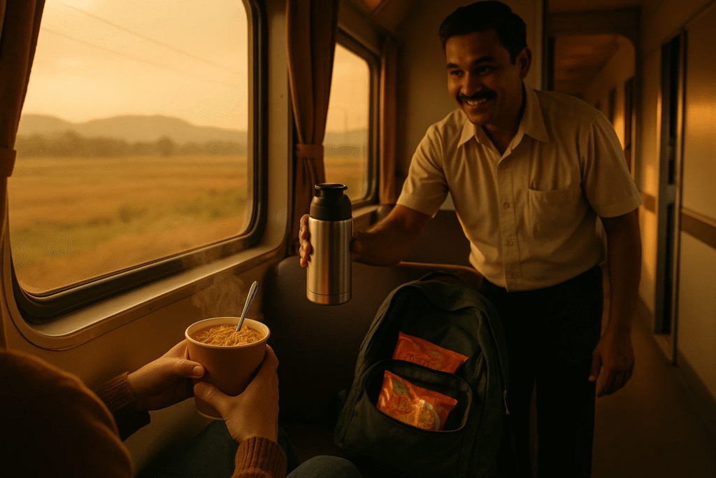 Instant noodles will always be my favorite comfort food. Not because they taste good but because they take me back to those Nostalgic days. I always carry a few packets with me wherever I go. Especially on train rides—you can’t tell when the need will arise. Just a request to the pantry guy for hot water and a smile is all it takes. The scent holds something; it is warm, it brings back memories, and is strangely comforting.