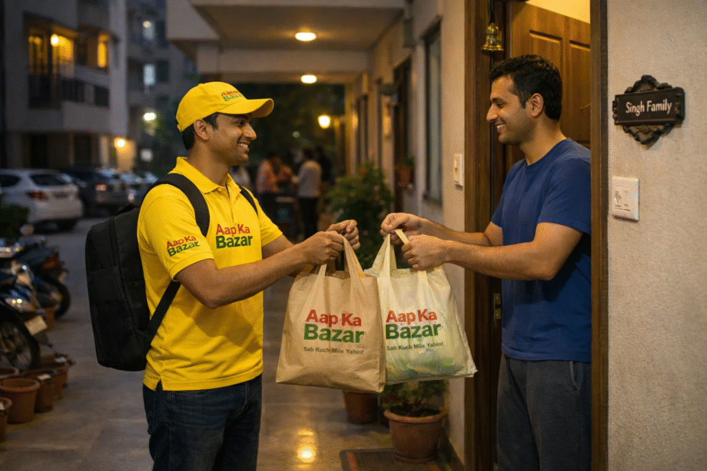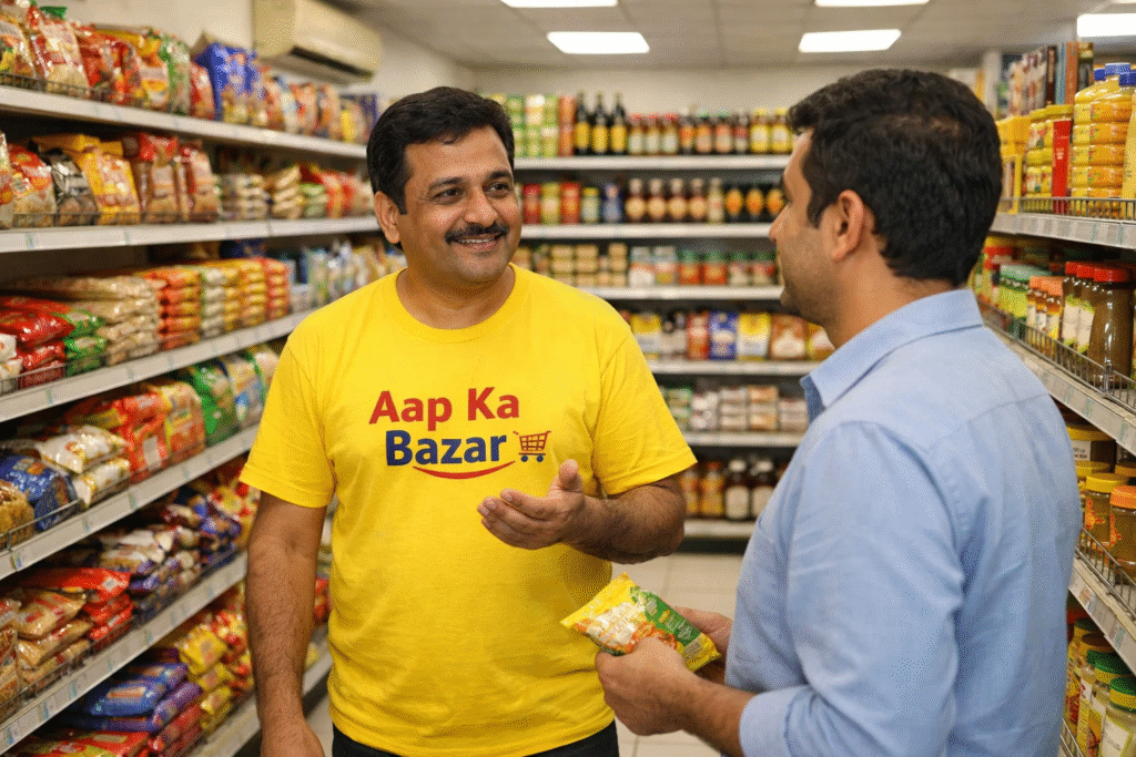 When you order through the Aap Ka Bazar app, we don’t send items from some far warehouse. We pick them from our own store, pack them properly, and send them to your home. Same products, same prices.