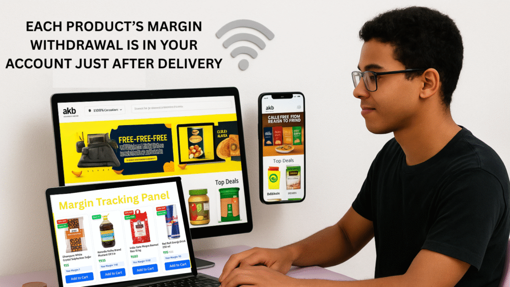 अगर एक ग्राहक ₹5000 की ग्रॉसरी खरीदता है, तो उसे Aap Ka Bazar पर वही सामान लगभग ₹4500 में मिलेगा। और आपको उस ऑर्डर से लगभग ₹450 का मुनाफ़ा मिलेगा — सीधा आपके अकाउंट में! मतलब ग्राहक का भी फ़ायदा और आपका भी!