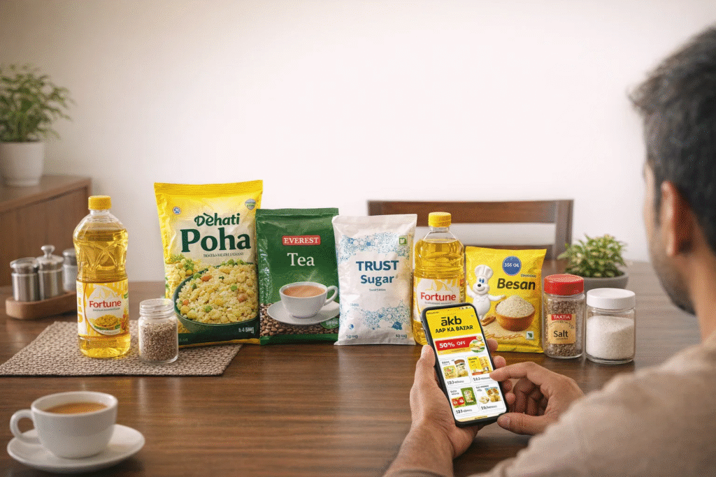 Office mornings are another story. Between getting ready and replying to messages, I suddenly remembered we were out of cooking oil and jeera. These small grocery items like poha, always finish without warning. That’s when Local Grocery Apps Dwarka Sector 27 feel like a blessing. Aapkabazar keeps it straightforward. No overcomplicated process. Add sugar, salt, or even besan to cart, place order, and relax.