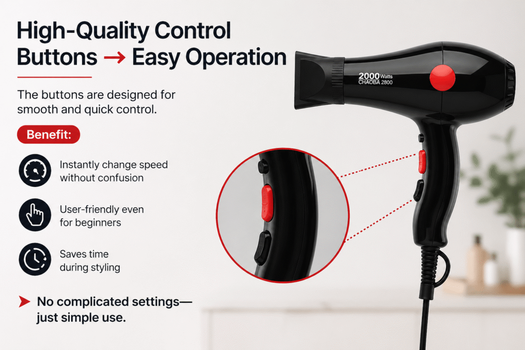 The Chaoba 2800 Hair Dryer is a great example of how good features directly improve your daily routine. Every function is designed to make styling easier, safer, and faster.