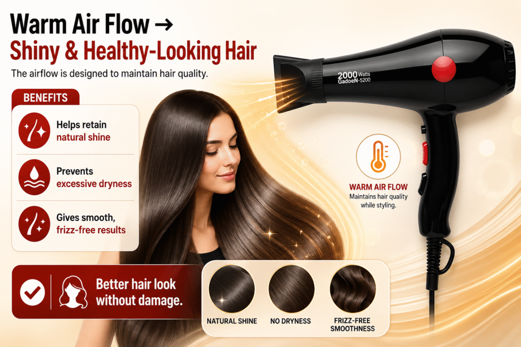 Warm Air Flow → Shiny & Healthy-Looking Hair