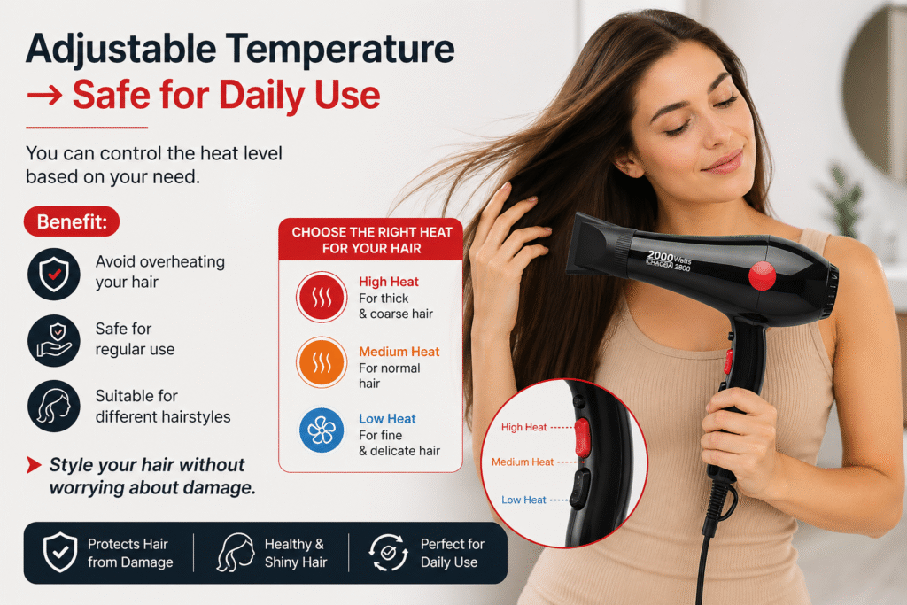 Adjustable Temperature → Safe for Daily Use