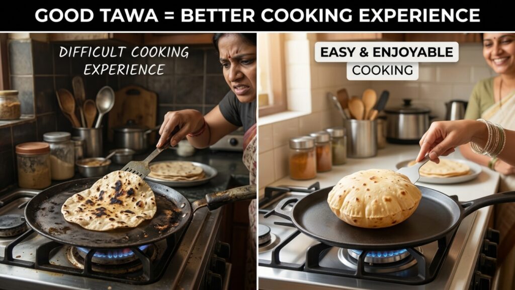 The truth is, a good tawa makes a big difference to our cooking, and once you start using the right one, everything falls into place.