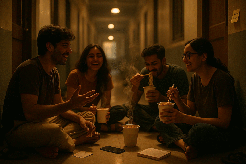 Around midnight, when the lights were out in the hostel except for a few, and everyone was pretending to study, a voice would just ask quietly, “Should we make noodles?” In no time,