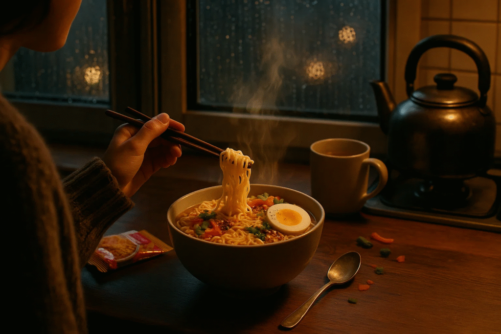 Sometimes I throw in a boiled egg, or some leftover veggies, or just whatever’s lying around. No rules, no recipes—only comfort in five minutes.