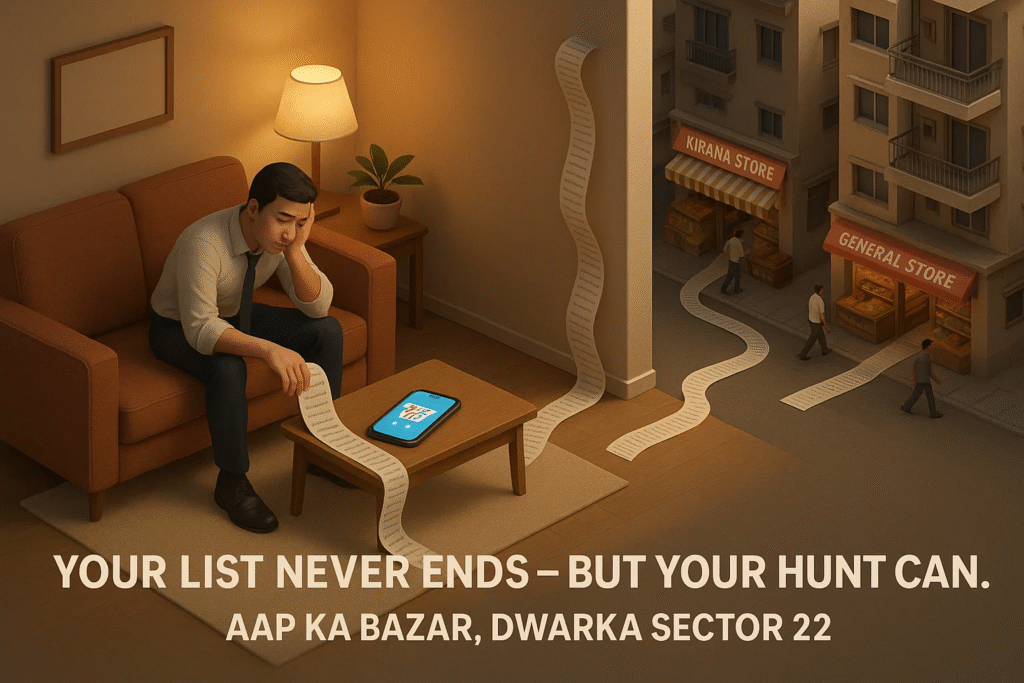 Yaar, there are so many local grocery stores in Dwarka Sector 22 Delhi — those tiny convenience shops under the buildings, and some bigger ones near the main road. I used to go with my jhola every weekend, list ready and all, but honestly, after a full week of work, who has the strength? By the time it’s 8 in the evening, all I want is a cup of chai and some silence… not to go hunting for sugar or atta in crowded lanes.