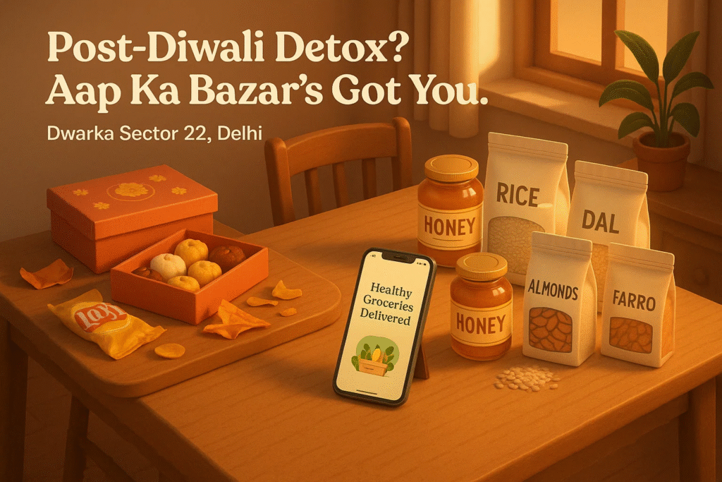 And for those of us trying to eat a bit cleaner (you know, that healthy phase after Diwali snacks), Aap Ka Bazar has really nice healthy grocery options in Dwarka Sector 22. You get whole grains, low-oil snacks, and good-quality ingredients without hunting in ten different shops.