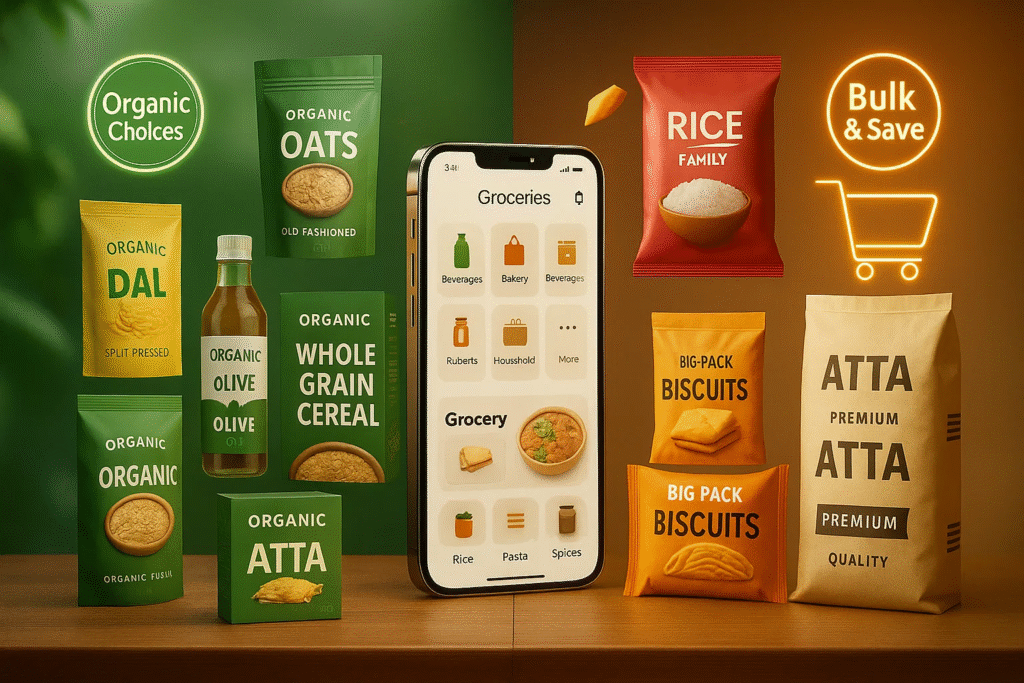 There’s a strange comfort in lying on your bed, scrolling through branded snacks, cereals, sauces, masalas—whatever you need—and just placing the order. And within minutes, everything lands at your door, neat and clean. No crowds, no drama.