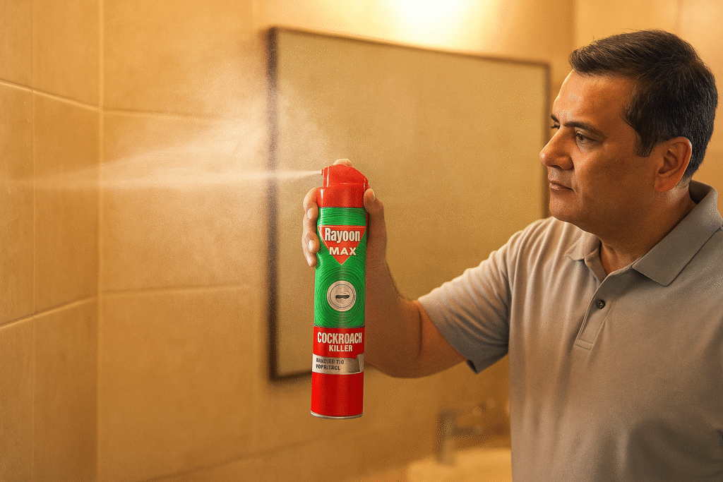 Products like Mortein, Baygon, HIT or Laxman Rekhaa have powerful and effective formulas that are made to kill cockroaches quickly, and continuing to kill cockroaches for a long time as well.