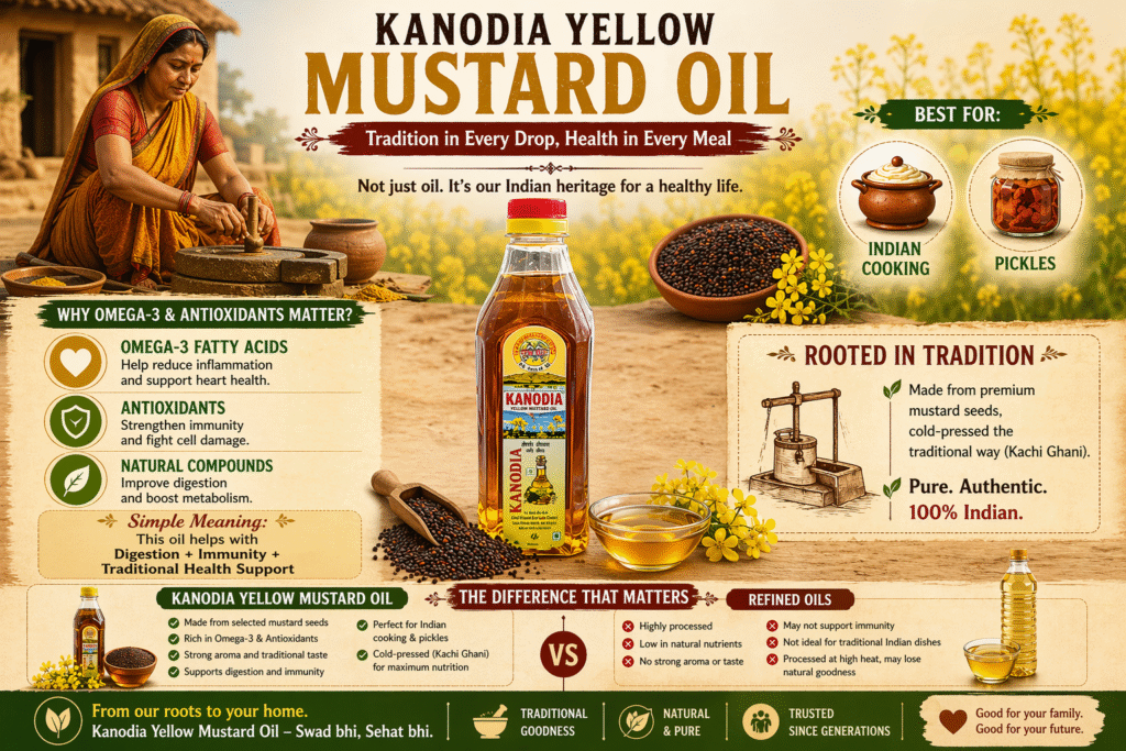 🌾 Mustard Oil – Why Omega-3 & Antioxidants Matter