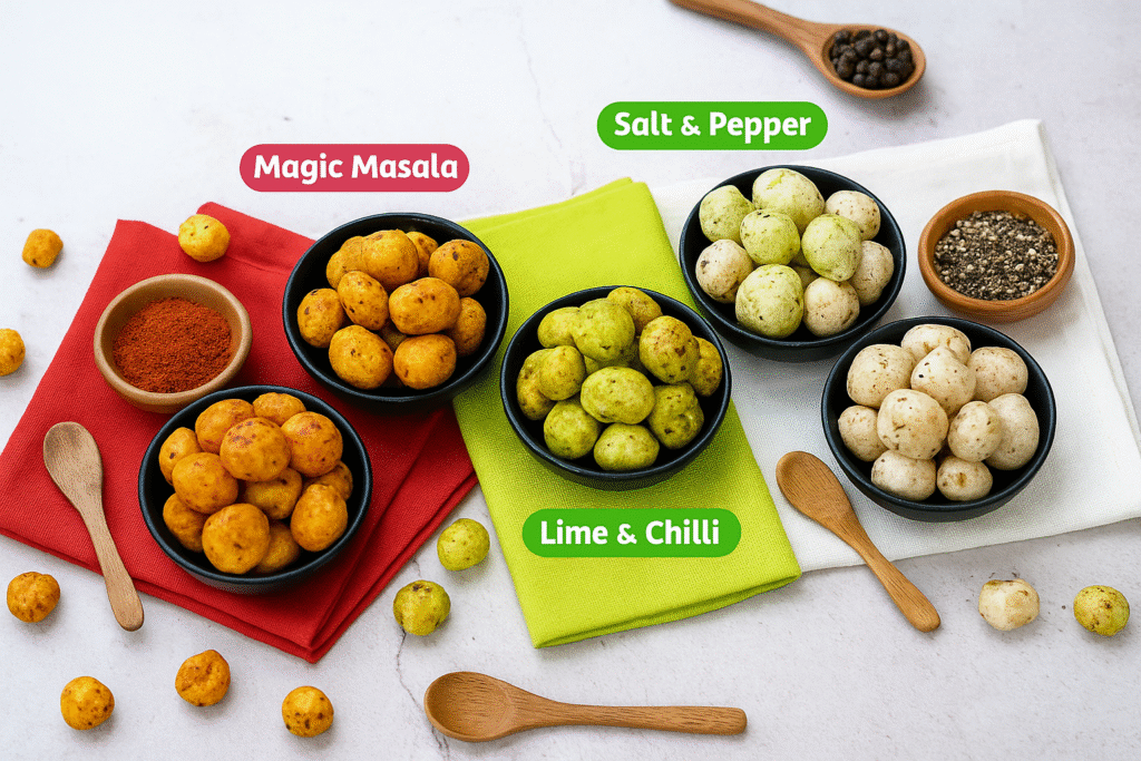 Let’s be real. Chips are fun, but they leave you feeling heavy. Flavored makhana? Different story. Each bite is crisp, flavorful, and kinda magical. Tangy masala, cheesy delight, minty freshness, or just classic roasted salt—they all hit differently.