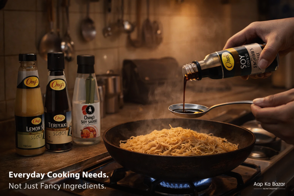 At Aap Ka Bazar, we noticed something very simple. People don’t always want heavy groceries. Many times, they just need small but important things—like chilli sauce, soy sauce, or other Asian sauces that turn a basic dish into something tasty.