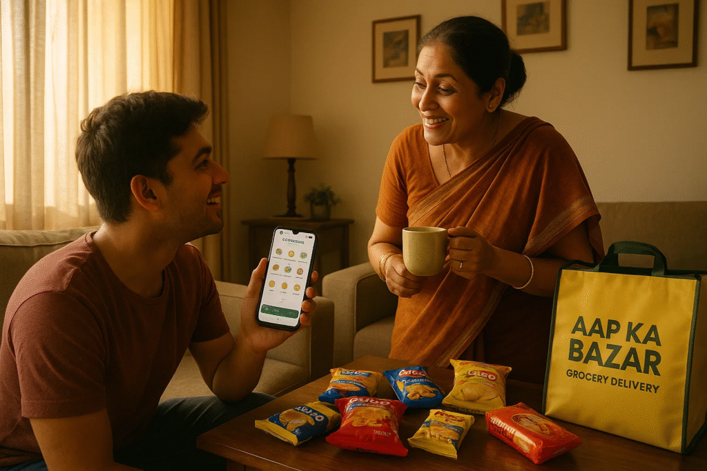 Like last week my cousin came over unannounced. He is that “bhukkad” type who always needs snacks. I had nothing at home except Maggi and half a pack of biscuits. I quickly opened the app. placed an order from Aap Ka Bazar and before we even finished arguing over which movie to watch groceries were at my door. It actually felt like having my own mini genie.