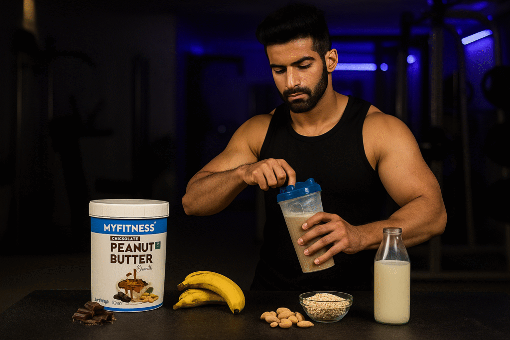 • High-calorie smoothie (banana + peanut butter + oats + milk + honey)