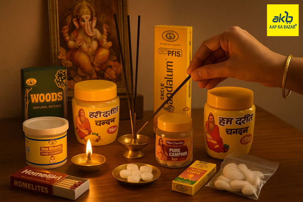 At Aapkabazar, we always say one thing—pooja doesn’t have to be complicated. It’s that quiet moment before the day begins… the diya softly glowing, a quick namaskar, and a little prayer whispered in your own words. Many of us grew up watching this at home, right? And even today, between office calls, school tiffins, and traffic, that small ritual still matters. That’s why, we keep our pooja needs simple, familiar, and always ready for you. That’s why we keep all your daily pooja needs simple, familiar, and always ready for you.