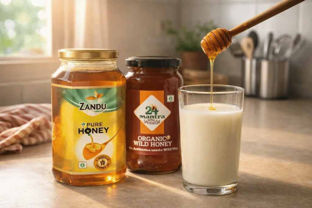 It is smooth, easy to mix, and mild in taste. It blends easily into tea, milk, warm water, or simple breakfasts without changing the flavour too much. That’s why it remains the most commonly used honey in daily Indian homes.