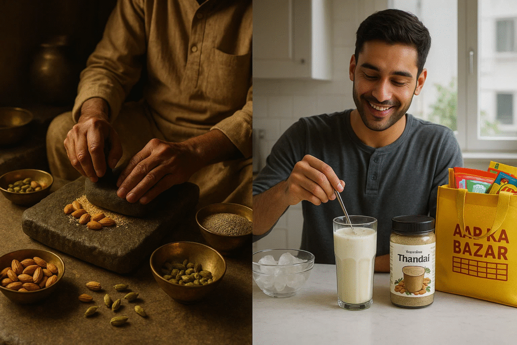 When we were younger, making thandai was a full project. Soaking almonds overnight, grinding them with poppy seeds, mixing everything by hand — total labour of love. But now, who has that kind of time? Between work calls and life’s chaos, even boiling milk feels like a task sometimes.