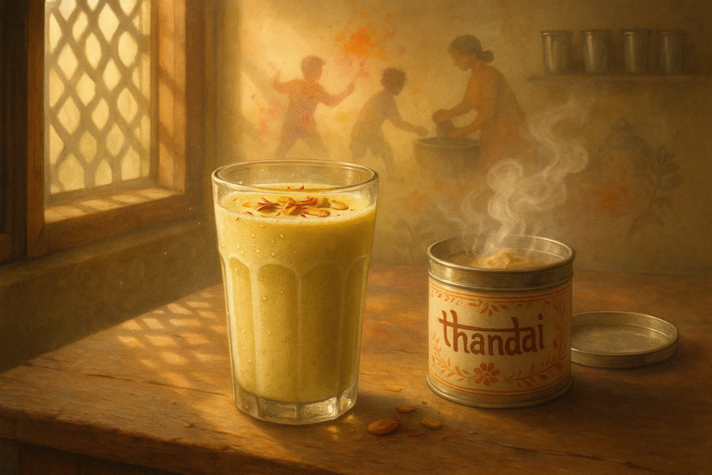 I grew up in a home environment where celebrations were boisterous occasionally untidy and overflowing with food. And thandai… ah it was invariably the star during Holi. My mother would soak nuts overnight mill everything freshly and proudly present it in those metallic tumblers. Frankly, I didn’t appreciate it back then. Now as a grown-up when existence proceeds like an endless transit route even preparing a straightforward beverage feels like an accomplishment.