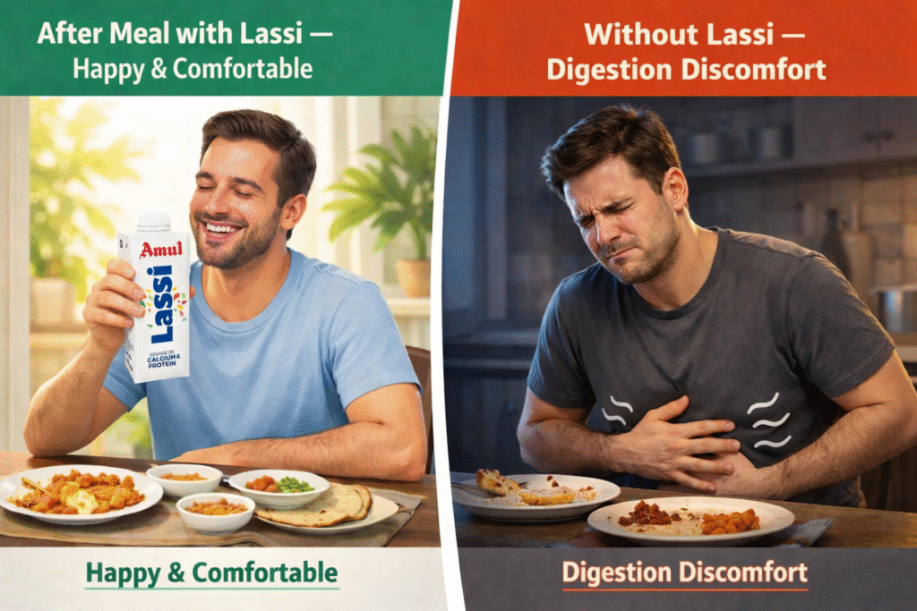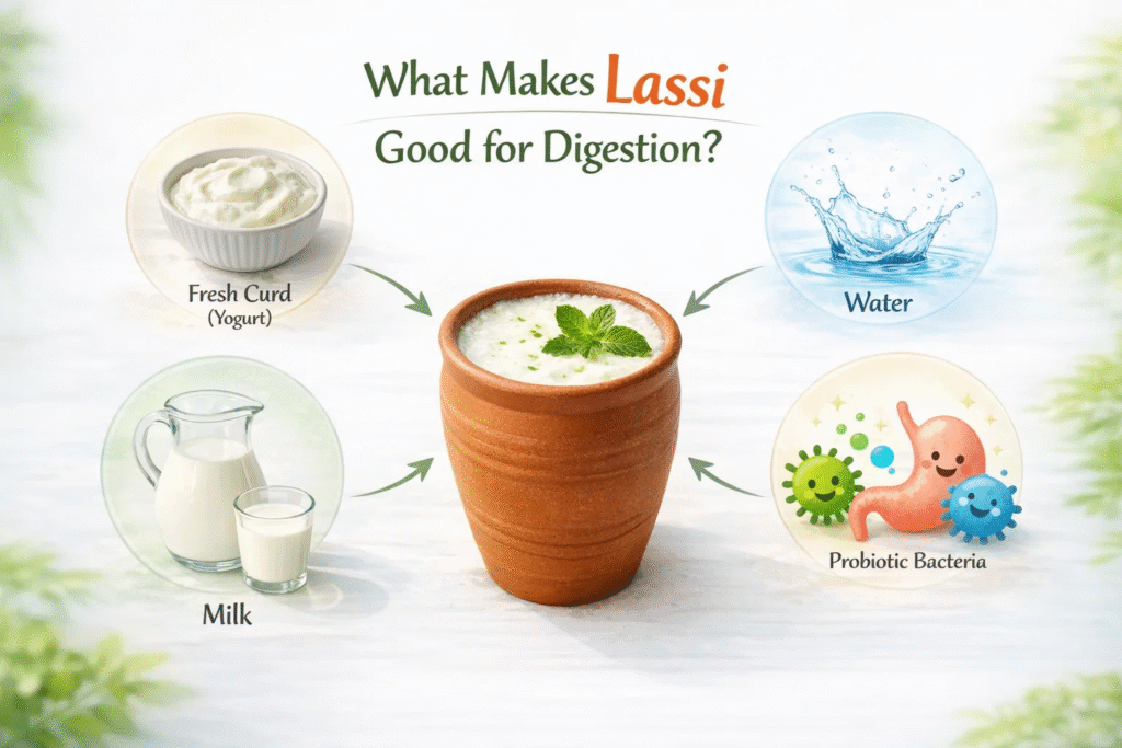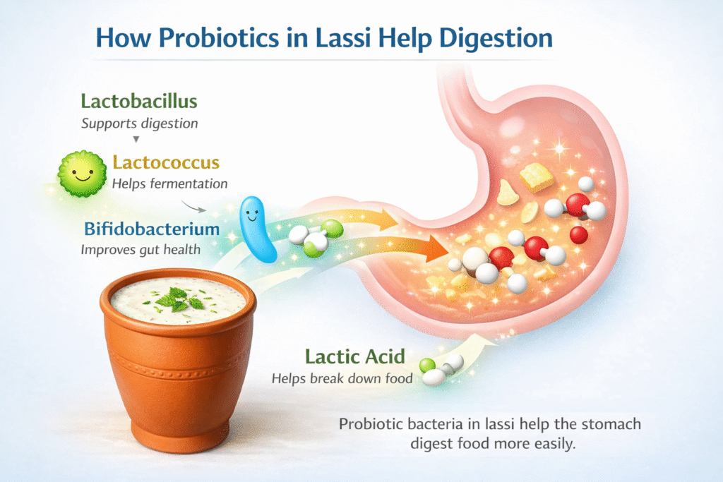 The presence of lactic acid helps the stomach process the consumed food more effectively. This is the reason why fermented products, like lassi, are easier to digest than milk.