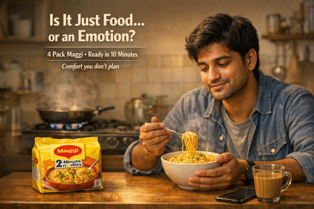 Keeping a 4 pack maggi at home just makes sense. Because let’s be real—one pack is never enough 😅